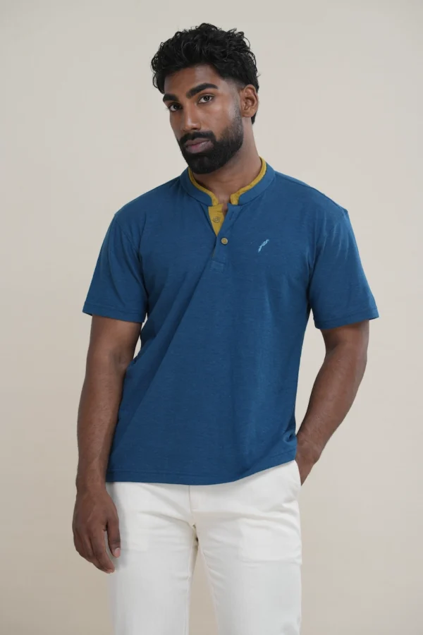Versatile Henley Style: Combines the comfort of a t-shirt with the smarter look of a collared shirt. - Specific Detail: The interplay of the double collar and placket creates a unique visual and textural element, setting this Henley apart.