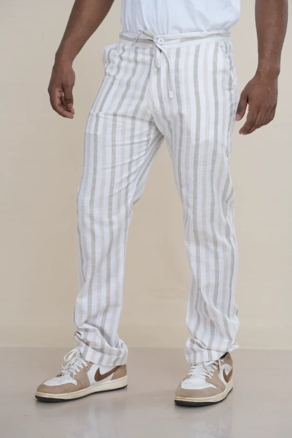 Our Men’s Relaxed Fit Drawstring Trousers are engineered for comfort without sacrificing style. This design features a comfortable, relaxed fit through the leg and a functional drawstring at the waist, allowing you to customize the fit for optimal comfort. Often incorporating a classic button and fly closure, these trousers merge the ease of lounge pants with the structure of casual chinos. The versatile design makes them a perfect choice for everything from weekend errands to relaxed vacation evenings.